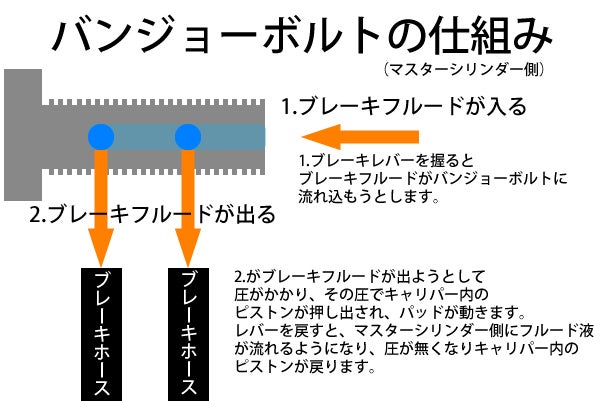 バンジョーボルトはマスターシリンダー側にもキャリパー側にも付いています。
