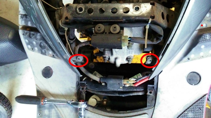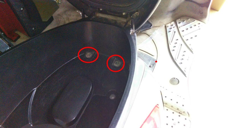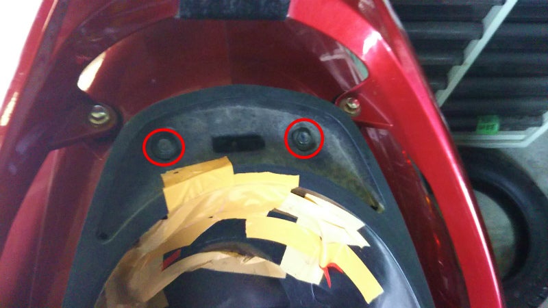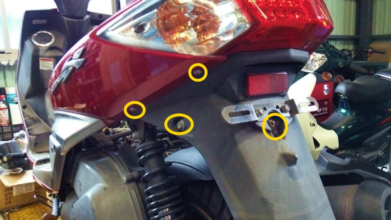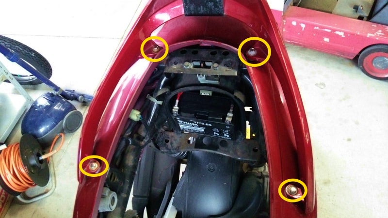 まずはじめに ナンバープレートを外し10mmのソケットを使用してシートボックス、クラブバーを取り外します。
