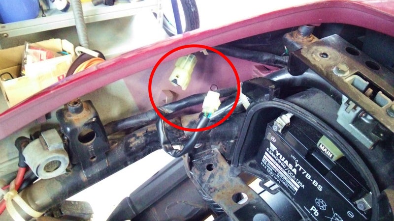 電気信号線のカプラーを装着して外装は装着せずこのままでキーをオンにします。