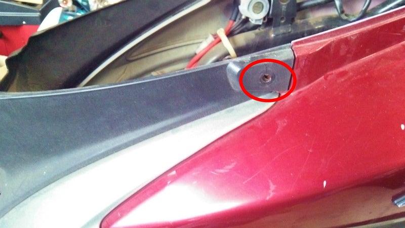 プラスドライバーで 左右のフートレストモール、カバー サイド1と左右のサイドカバーを留めている+ネジを外して、