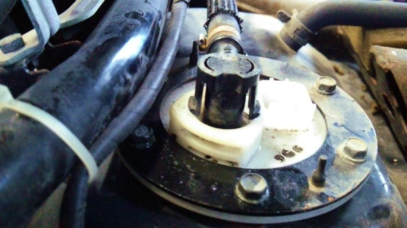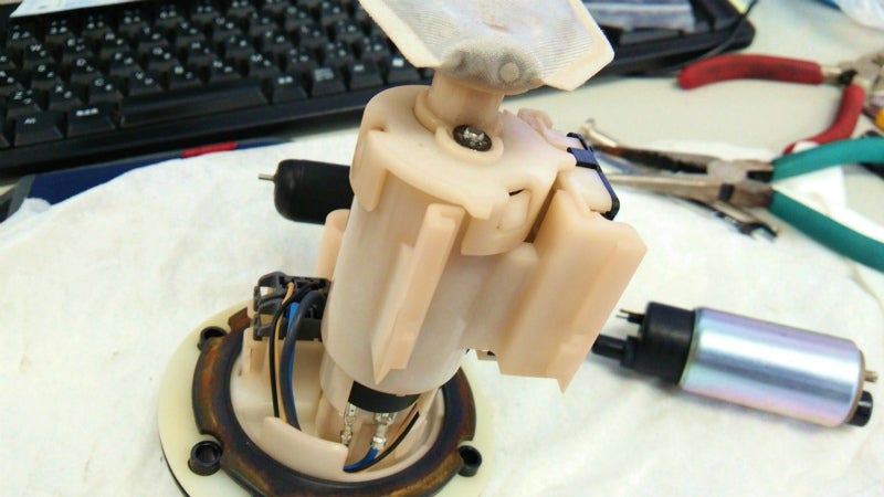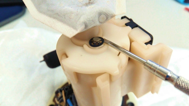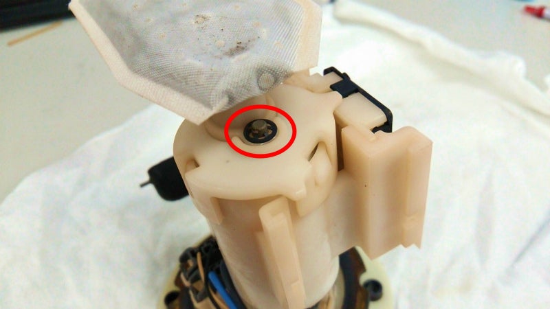 燃料ポンプ内のガソリンを抜いたらいよいよ燃料ポンプモータの交換です。