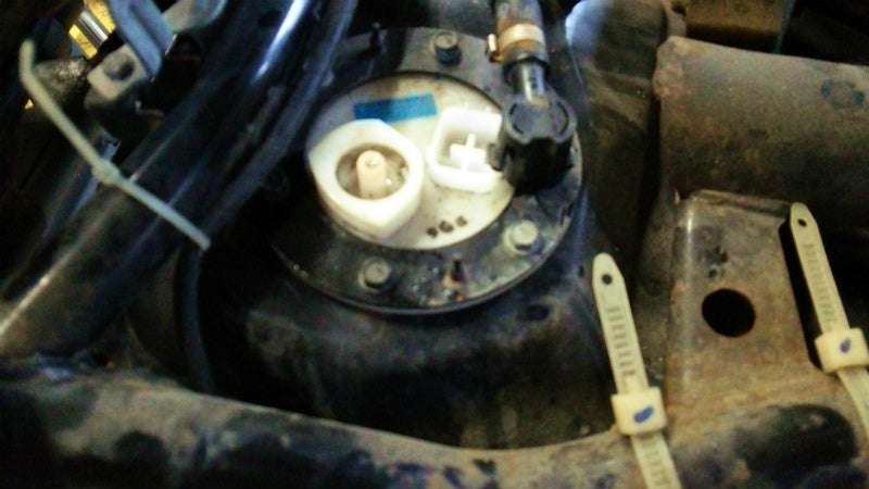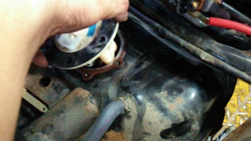 ガソリンタンクをずらしてようやくから燃料ポンプを取り外しが出来ました。