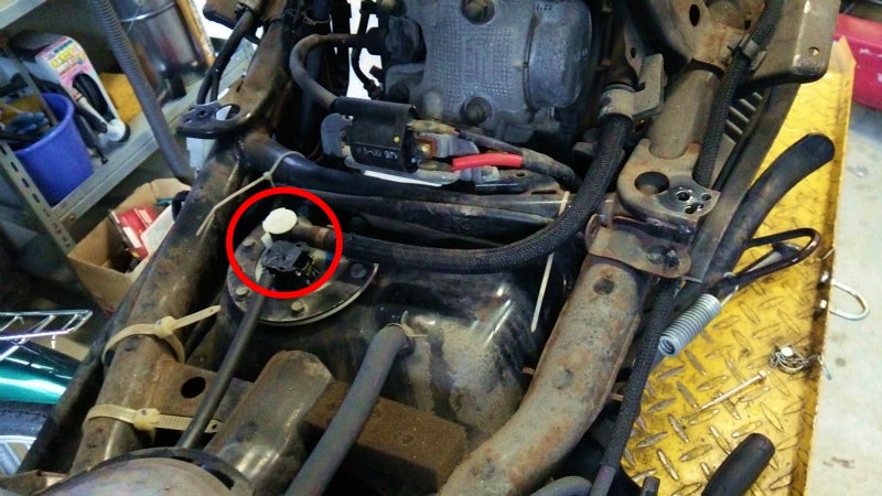 しかしフレームが邪魔をして燃料ポンプが外せません。