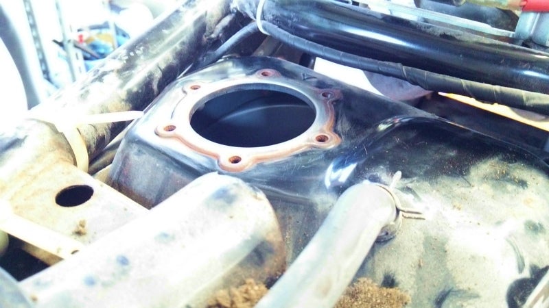 耐ガソリン用液体ガスケットを使用して燃料ポンプをガソリンタンクに装着します。