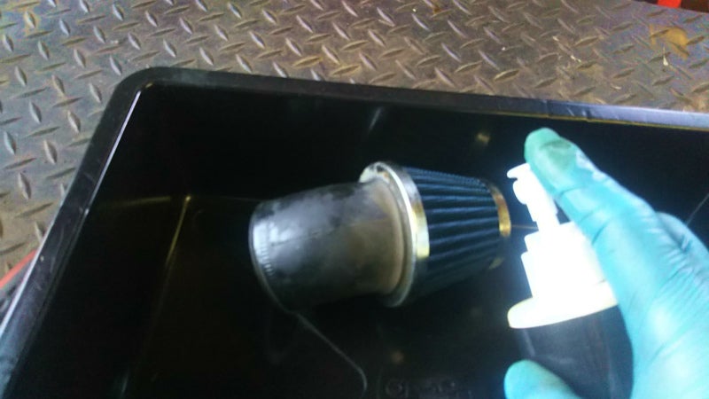 汚れが酷い場合はもう一度エアクリーナーエレメントにクリーナーを吹きかける。