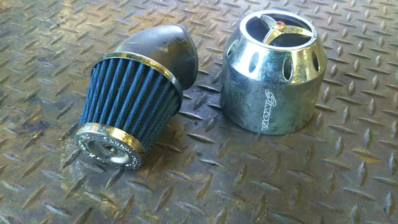 SIMOTA純正エアクリーナーエレメントクリーナーを使ってアドレスV125のエアクリーナーエレメント と 汎用50mmハイパフォーマンス 汎用 エアフィルター
