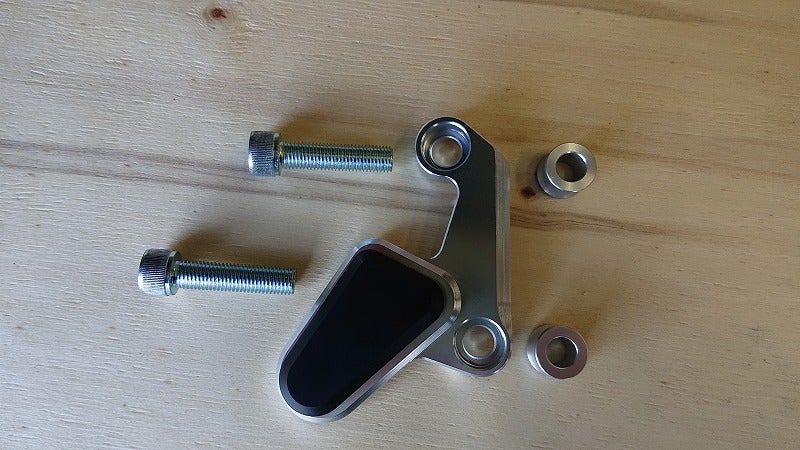 取り付けの順番は キャリパーガード本体 スペーサー 下記写真のようになります。