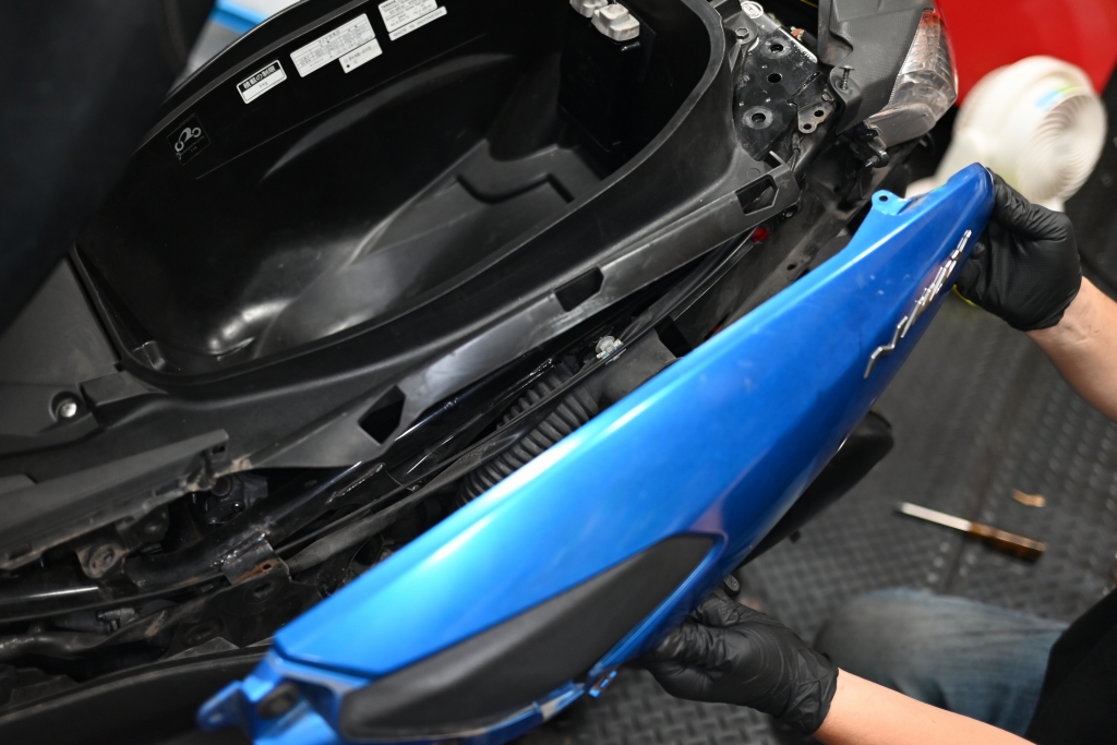 後は、外したのは逆の手順でシートやカウルを戻してください。