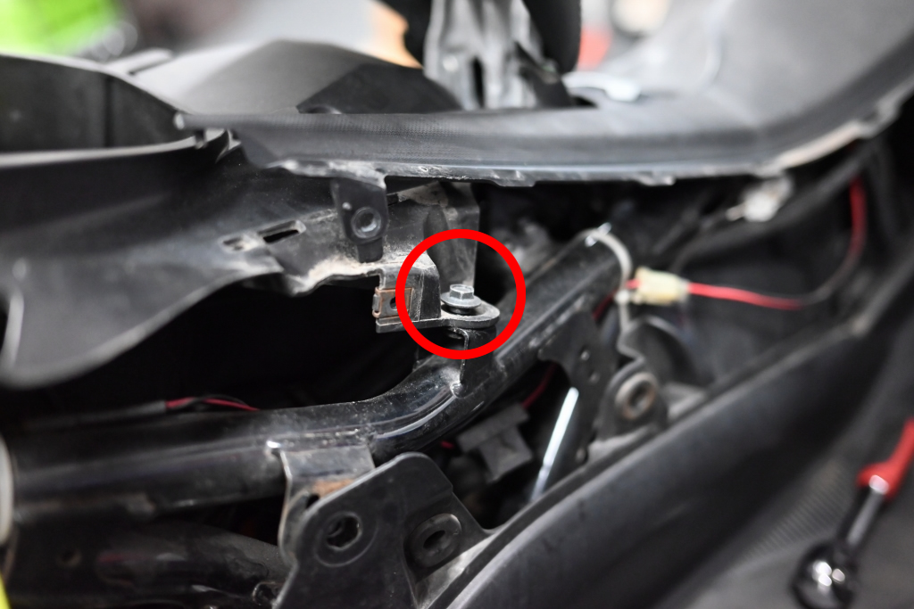 左側フロント側のインナーカウルのボルトを外します。