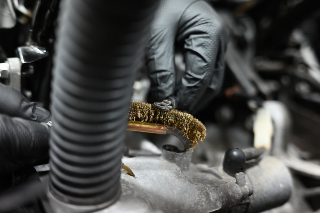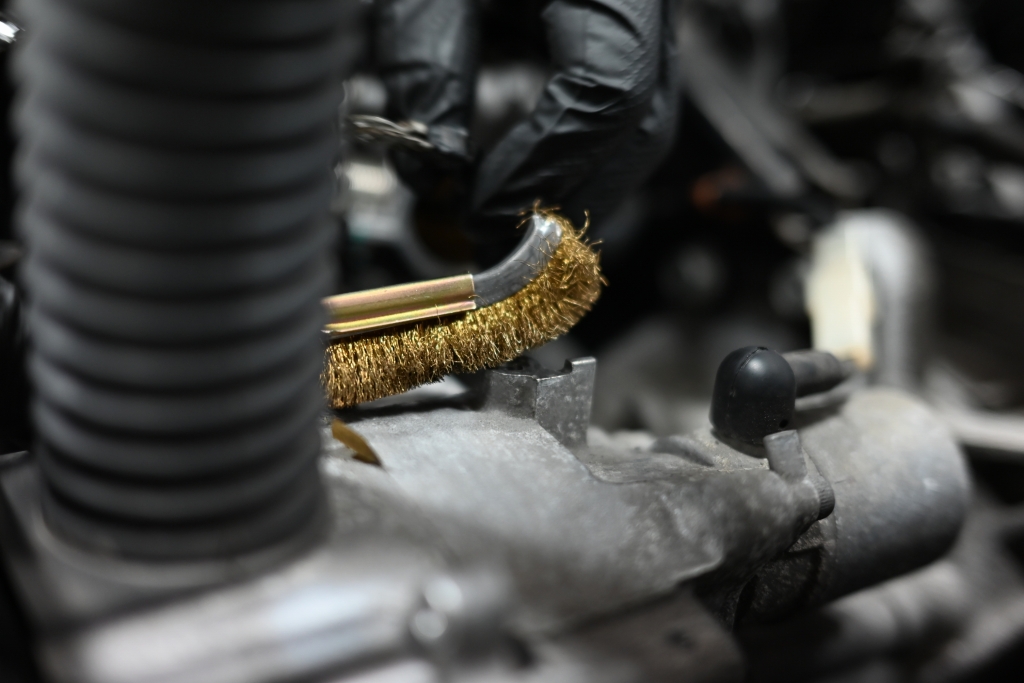 ボルトを外しましたら、ワイヤーブラシでしっかり掃除します。