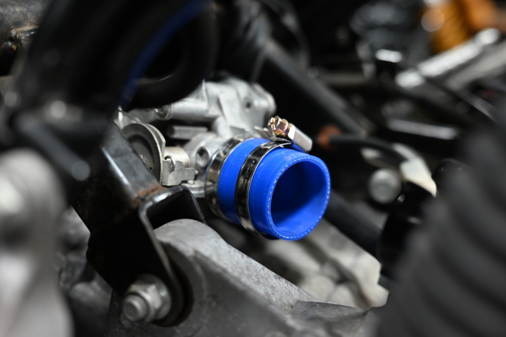 固定出来ましたら、スロットルボディ側ののホースバンドをしっかりと締めこみましょう。