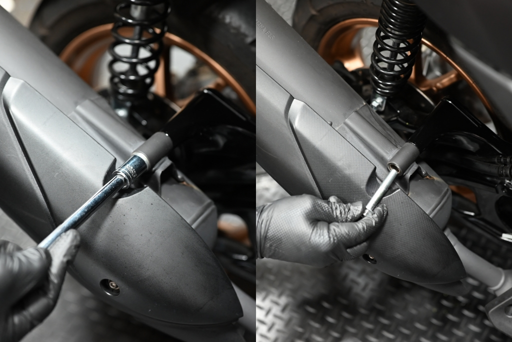 サイレンサー固定ボルトは長さが異なりますので、分かるようにしておきましょう。