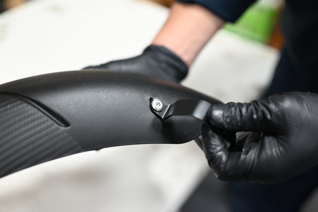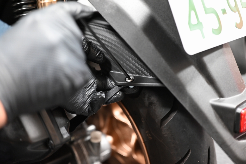 リアタイヤ後方からインナーフェンダーを差し込んでいきます。