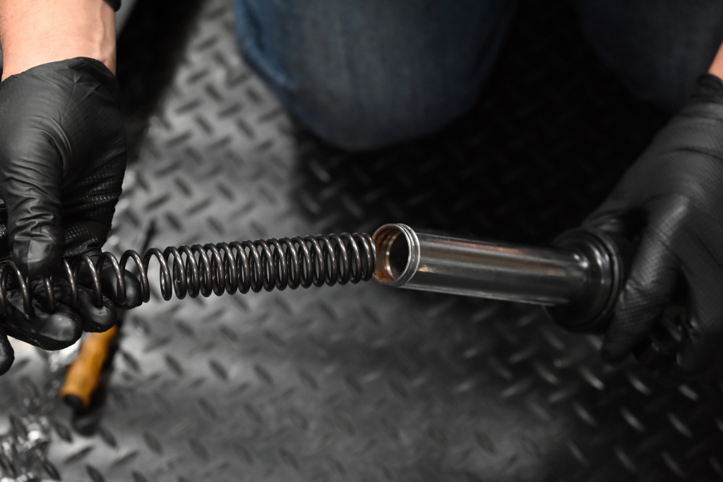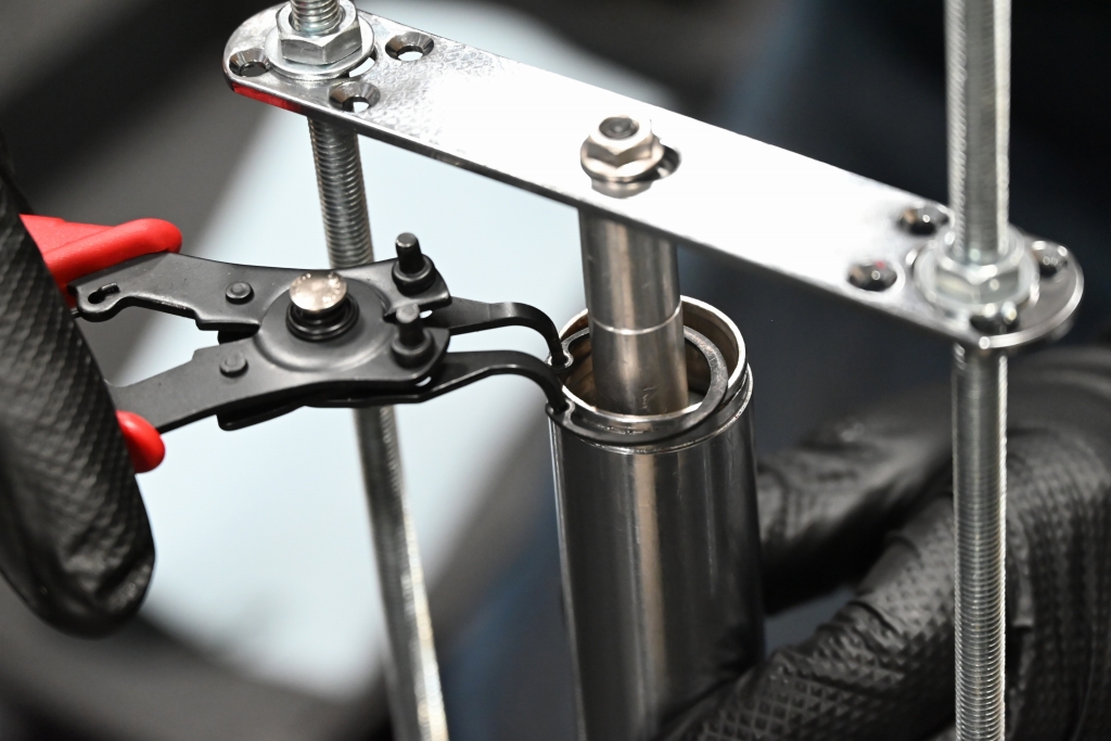 この時アウターチューブ内のオイルシールクリップの取り付け溝が見えるまで入れていきます。