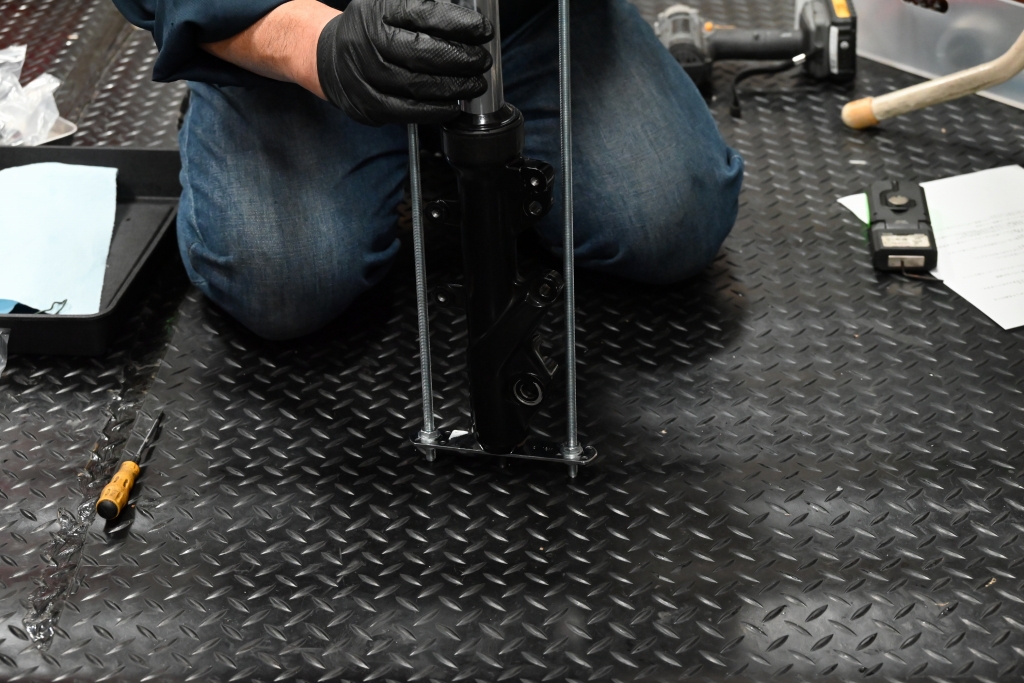 自作したフォークコンプレッサーの下部にアウターチューブを乗せます。